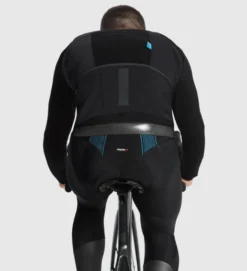 - Mini Gilet: se trata de una capa de aislamiento altamente transpirable que cubre la parte superior del pecho y la garganta. La cremallera se ha desplazado hacia un lado para facilitar la superposición de capas.