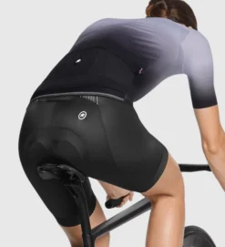 - Este maillot combina el tejido miniCheck Tex, que aporta la textura característica de los maillots de ASSOS y que está ubicado en el cuerpo de la prenda, con un panel de tejido Stabilizator V7 que fija la posición de los bolsillos. Esta mezcla de tejidos neutraliza el olor y favorece la transpirabilidad y la circulación del aire. Las mangas y los bolsillos, por su parte, han sido confeccionados con nuestro tejido de punto por urdimbre Push Pull, de manera que aportan una sujeción y elasticidad bi-stretch que favorece la estabilidad. Por último, el tejido ofrece protección solar en la parte frontal (FPS 25), en la espalda (FPS 30) y en las mangas (FPS 50+).