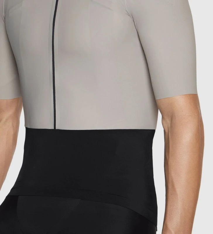 - El cuerpo del maillot está confeccionado con Sens SN, un tejido de punto ultraligero con elasticidad bi-stretch conformado por un diseño con estructura de panel de abeja reforzado y de secado rápido. Además, en la parte central de la prenda hemos incluido una franja del tejido de punto Ossidia, que es suave y sedoso, aporta comodidad sin fricción, estabilización, sujeción y además dispone de la tecnología odorControl. Ambas partes de la prenda son ultrasuaves y ultratranspirables, además de contar con protección solar FPS 50+. En cuanto a la parte posterior, hemos añadido un panel de tejido Stabilizator V11, el tejido de su clase más ligero y que mejor favorece la circulación del aire; mantiene un corte ajustado, evita que la prenda se afloje en la parte de los bolsillos y ofrece protección solar FPS 15. Además, los bordes ajustados y la cremallera reducen el peso, así como el volumen y la fricción entre capas.