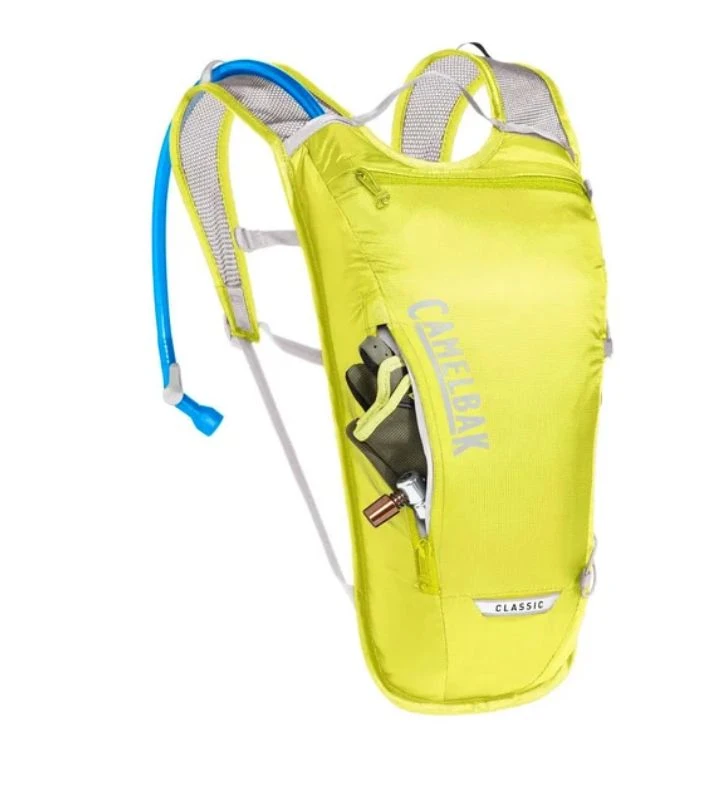 Mochila de hidratación Camelbak Classic Light. Ligera y cómoda mochila de hidratación que ofrece un óptimo confort y firmeza. Incorpora una bolsa Crux de 2 litros de capacidad, ideal para una buena hidratación cuando vas en bici. Fácil de rellenar, sin necesidad de quitar la bolsa de líquido, incorpora detalles reflectantes para ser más visible en condiciones de poca luz y sujeción para el casco y la luz.