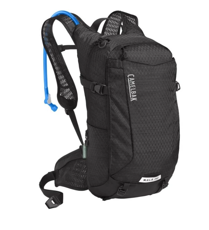 La mochila de hidratación Camelbak MULE Pro 14, con un depósito de 3 litros, está diseñada para usuarios de E-Bike. Está fabricada con materiales ligeros, e incluye un panel trasero Air Support Pro y una malla de ventilación 3D que facilita la regulación de la temperatura en las salidas largas. El depósito de hidratación de 3 litros también está diseñado para salidas prolongadas. También tiene un bolsillo específico para la batería de la bicicleta y un organizador de herramientas externo. La mochila Pro es compatible con el Impact Protector.