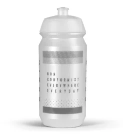 Bidón ergonómico fabricado en material ligero y fácil de apretar. Hidrátate de forma cómoda y segura gracias a su tapón con cierre de seguridad.