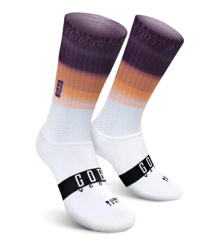 Calcetines de caña prolongada aerodinámicos y ligeros. Enfocados para rendir al máximo durante competiciones o entrenamientos intensos en días cálidos.