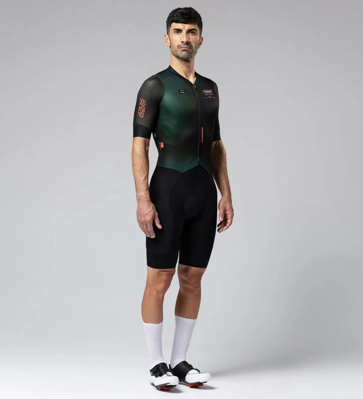 Prenda de gran rendimiento aerodinámico, resultado de la unión del culotte corto Absolute y una parte superior inédita e innovadora. Elaborado con tejidos que aportan elevados índices de transpiración, secado y comodidad.