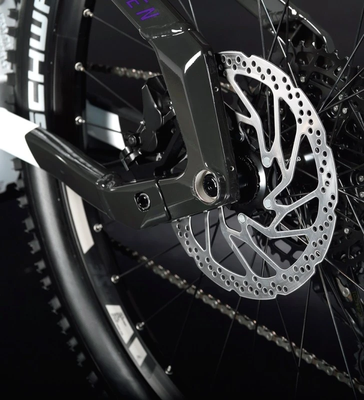 - Frenos: Shimano, MT420, 203 mm, 4-piston disc brake.