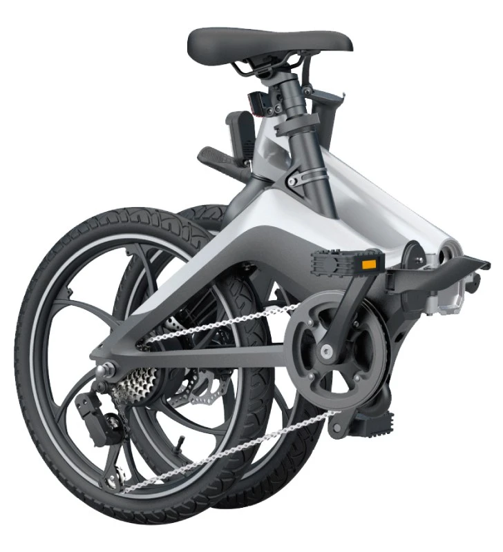 - Reflector trasero rojo debajo del sillín, pedales con reflectores integrados, neumáticos con bandas reflectoras circunferenciales.